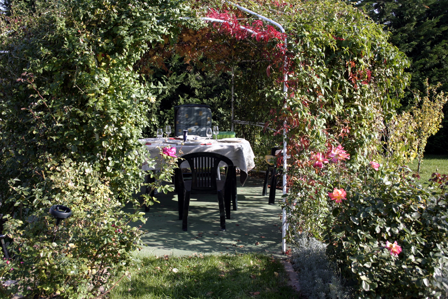 Mivel az időjárás végre emberi, a kert nyugalmában lassan, komótosan fogyasztottuk el az ebédet. Két óra nyugalom, ami kellett.