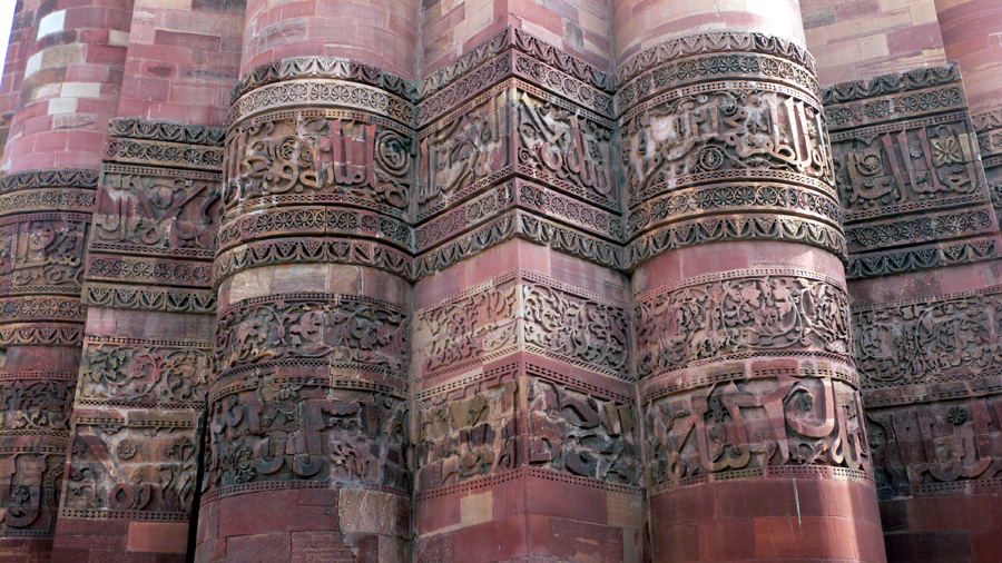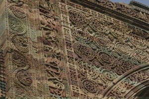 Néhány képet szeretnék mellékelni azt bemutatandó, hogy akár a torony felületének megmunkálása, de még inkább a teraszok alsó szerkezetének csipkézettsége mennyire remekmű. A vörös homokkő Delhiben általános építőanyag, viszonylag könnyen megmunkálható, és az időjárásnak is ellenáll. A mecset falain egyébként látható, hogy a mintázott részt a már megépített falszerkezetre utólagosan rögzítették fel, a földön mintázták, így a muszlim díszítés bonyolultsága nem volt könnyen kivitelezhető. Érdekes, hogy a legóként összerakott falak kapcsán az indiaiak képessége letűnőben lehet, mert ahogyan vendéglátónk fogalmazott, a tetris nem az erőssége e népnek. Azt hiszem, az érszázadok alatt erősen megkopott a képesség, mondom ezt annak ellenére, hogy a műemlékek restaurálása a mai napig mesterek százait igényli. Ám valahogy mégis…