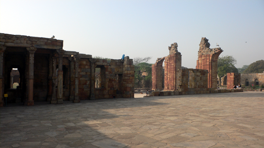 Kérdés számomra az, hogy a mecset helyén állt-e korábban hindu templom vagy csak a máshol lerombolt hindu és jain templomok, avagy a rajput város egyéb falainak, építményeinek köveit hordták össze egy új helyre. Sajnos az alaprajzon látható udvar-szerkezetekből alig maradt valami. Utólagosan saját képeimet is nagyon nehezen illesztem össze emlékeimmel.