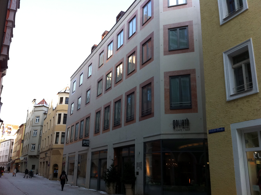 Szállást az óvárosban találtunk, a szálloda neve Hotel Goliath am Dom volt, melyet booking.com vendégei pazarnak minősítenek. Ez azért egy kicsit túlzás, ám tény, hogy tiszta, rendes butikhotel, mely trendi, ám mihaszna stíluselemekkel feldobott modern épület.
