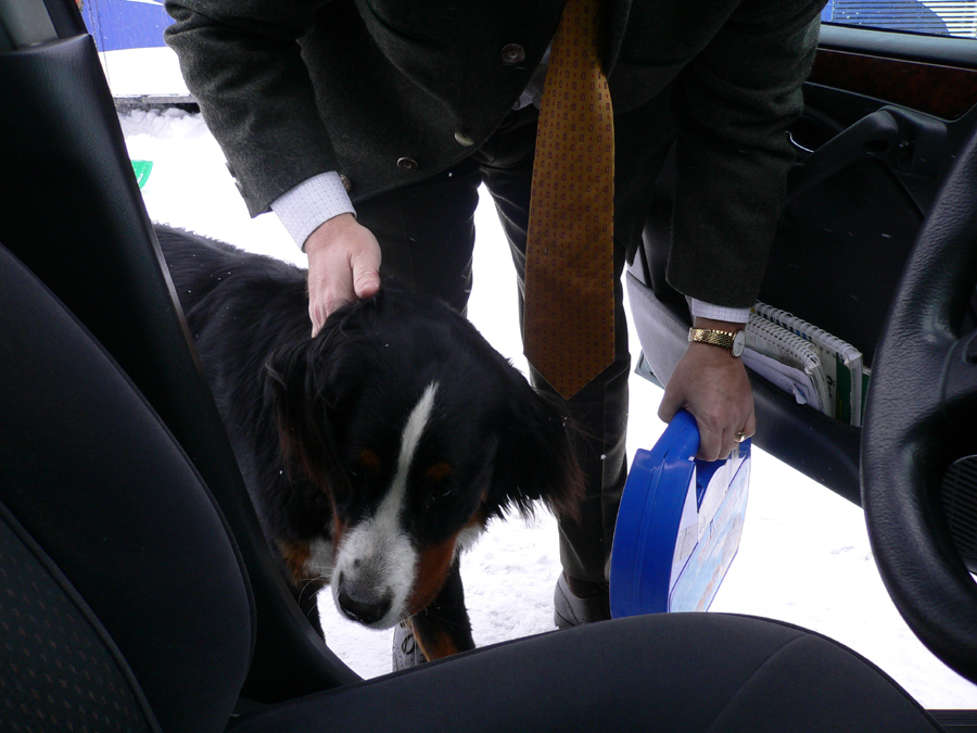 Nos, nyomtam is rendesen felfelé a havon magamat, gyakorlatilag egyes, vagy kettes fokozatban, alapjárat közeli fordulaton, hogy ne csússzon meg a téli gumi. Haladtunk is rendesen, de minél feljebb értünk, annál nagyobb volt a hó az úton. Egy fordulóban meg kellett állnunk, hogy felszereljem a hóláncot. Legnagyobb meglepetésemre valahonnan előkerült egy gyönyörű eb, szinte csak rumos hordó nem volt a nyakában. Benézett a kocsiba, megszaglászta a hóláncot, majd amikor mindent rendben talált, továbbállt.