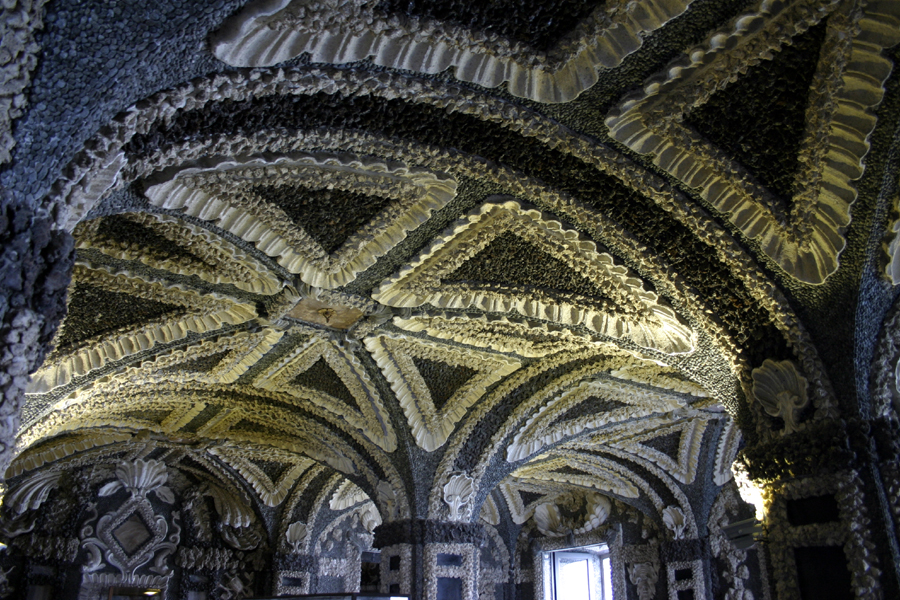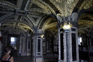 Az értékes festmények és kárpitok a kétség kívüli gazdagságról árulkodnak, ám az inkább hivalkodó, mintsem illő díszítőelemek nem győztek meg. A barlangszerűen kialakított grották valójában ugyanolyan barokk termek, mint a felsőbb szinten, de a falakat és mennyezetet borító kavicsokat, kagylókat mindegy 25 évig illesztgették a helyükre. A termek klímája remek, hűvös, és Baveno irányába remek, festői kilátás nyílik. Tudták, merre kell nézni.