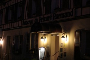 Cahaignes falutól nem messze találtuk ezt a zseniális kis vendéglót. A klasszikus francia fogadó – Auberge – bejáratát az összes létező gourmé ajánló tábla vette körbe. Éhesek voltunk, nagyon éhesek, de meglátván a “csillagokat” elbizonytalanodtam. Ugyanis magyarként gondolkodva azonnal az jutott az eszembe, hogy ingemet-gatyámat leveszik rólam egy tál lencséért, melyet ezüst és arany forgáccsal díszített ravatalozón állítanak majd elibém. Nem így lett…