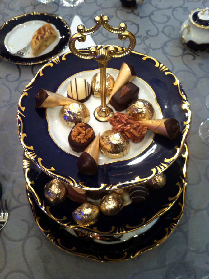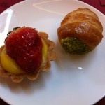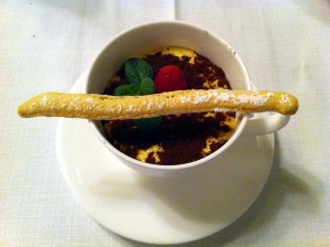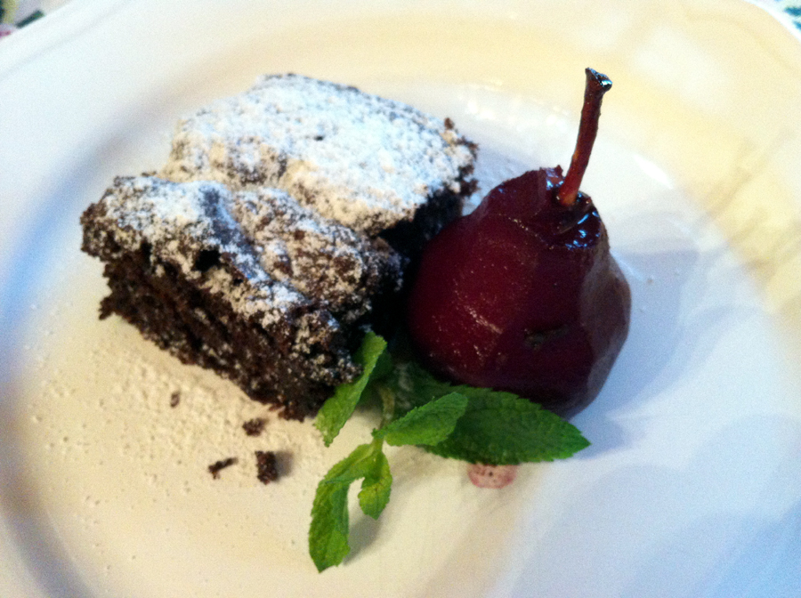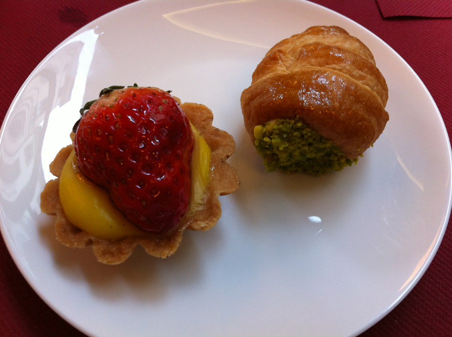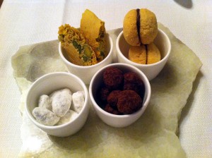 A ház klasszikus desszertje, másnap is visszatértem rá. És még a lehetséges – de esetünkben tudatosan elhagyott – kávé mellé felszolgált apró sütemények, melyeket végig kellett kóstolni. Megérte.
