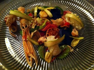 Itt most megint csúszik az emlékezetem, hiszen van egy rákos tésztafogásról is képem, mely partnerem étke lehetett. Mindenesetre bevágom ide, hátha lesz utólagosan lehetőségem arra, hogy rákérdezzek a séfnél.
