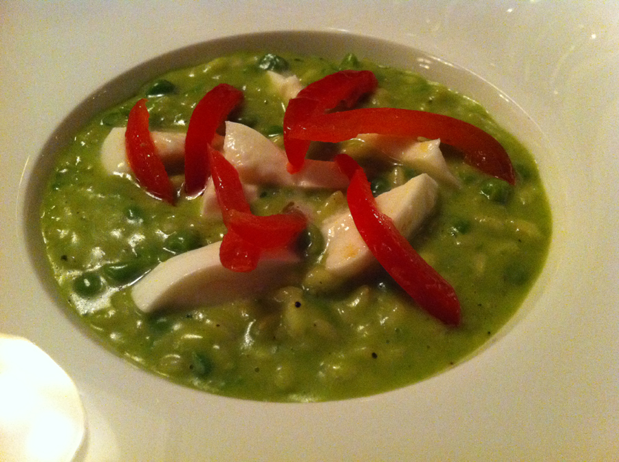 Hogy teljen a hasam is, a zöldborsó rizottó ajánlatát elfogadtam, és igazán jól esett. Apró falatokkal élveztem ki krémességének minden pillanatát.