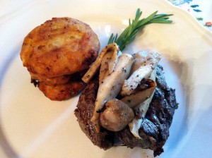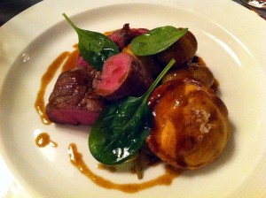 Egyszóval a képen látható mestermű került elém, mely életem legjobb fogásaival versengett. Hozzá egy kellemes, nem túl erős vörösbor dukált. Milliméteres szeleteket vágtam az omlós, szaftos húsból, mely kötelezően rózsaszín. Kiélveztem minden sejtjét. Persze, vágtam egy nagyobb szeletet is, mert az is isteni, amikor az ember egy jó nagyot beleharap, nem a nyelve alatt morzsolja szét. egyszóval lehetne ragozni még tovább, azt kell mondjam, hogy tökéletes volt minden.