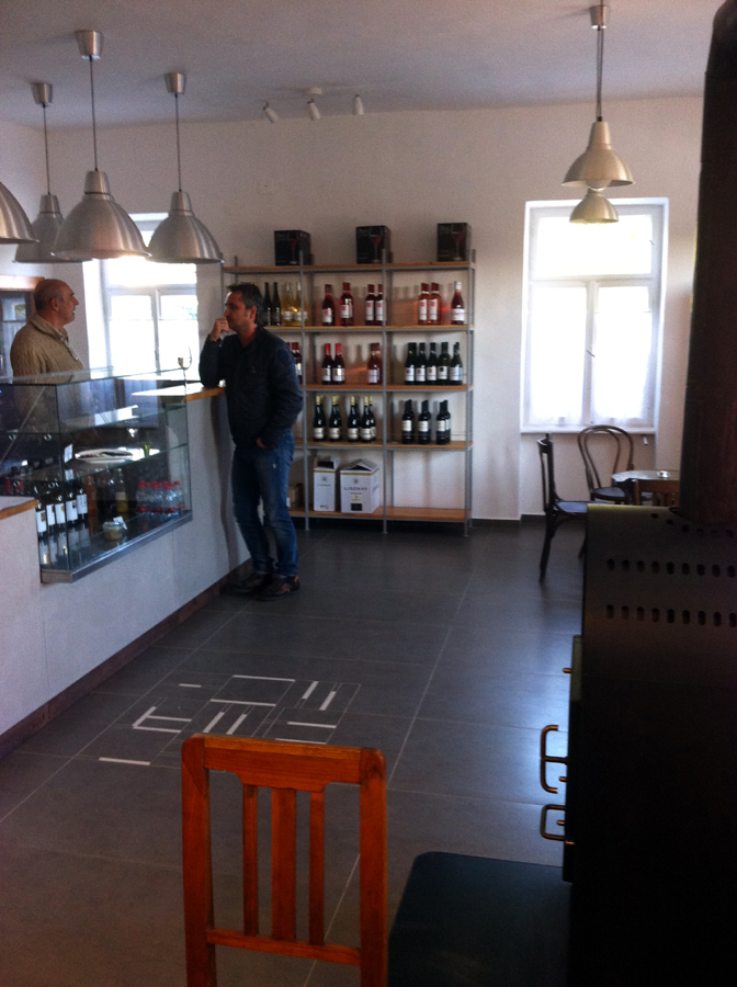 Közben a „főtéren” – ami ugyan nincsen – de mindenképpen a központban, Trombitás Tamás kivakart a dzsuvából egy ivót, mely a maga egyszerűségében egy olyan hely, mely átmenet a borozó és az étterem között. Egyszerű berendezés, fehér falak.