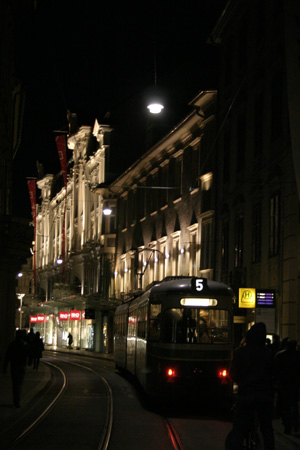 Grazi sétánk során egyáltalán nem éreztem olyan késztetést, hogy cél nélkül lődörögjek, és közben csodáljam az építészeti alkotásokat. Ám vacsora után a sötétség már ápolt és eltakart, és a világítás sápadt, sárgás színe mindjárt megváltoztatott mindent. Egy kedves cukrászdában elfogyasztott presszó kávé és Zacher torta segedelmével még inkább szebb fényben tűnt fel minden.