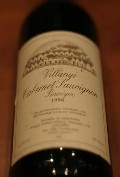 Az első próbálkozás a villányi Polgár Pince 1996-os Barrique Cabernet Sauvignona lett volna, ám ezt helyettünk a magnólia bokrok élvezték, ugyanis a bor az egyébként korrekt tárolás mellett is tökéletesen szétesett, ihatatlan volt.