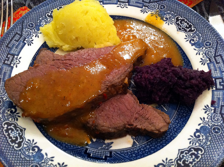 A káposztát melasszal édesítettem meg – csak nagyon keveset tettem hozzá – fahéjjal, őrölt köménnyel fűszereztem, és balzsam ecettel tettem pikánssá. Géppel nem túl apróra dolgoztam el, nem lett krémes. Gondolkodtam valami különlegesebb burgonya köretben, de már nem volt kedvem, így egy átlagos tört krumplit kreáltam, szerecsendióval ízesítve. Nos, így állt össze az az étel, melyet már fel merek tenni az oldalra. Nem vagyok szakács, csak próbálkozom, érdeklődöm, és egyelőre elégedettséggel tölt el, hogy a párom megdicsérte – pedig ő nagy kritikus.