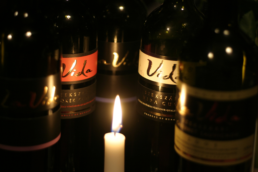 A pincészetek közül nagyon sokat megismerhettem, de nem ültem még soha olyan nemes körülmények között, mint Vida Péternél. A kóstolóhelyiség nem valami funkcionálisan kiépített szükségmegoldás, hanem egy alaposan átgondolt, brit eleganciát sugárzó klubhelyiség volt. Ahogy kis társaságunk leült az asztalok mellé, elnémultunk, és mint jó kisiskolások vetettük figyelmünket a borász felé, aki számomra teljesen mást hozott. Habár a szakmai előadás, beszélgetés során felesleges adatokat nem kaptunk, mégis konkrétan részesei lehettünk a szőlő és bor megszületésének, fejlődésének és élvezetének minden pillanatáról. Nem mesterkélt profizmusról, kitanult előadásmódot kaptunk, hanem olyan közvetlen, baráti elbeszélést, mintha a borász nem is a borról, hanem családjáról beszélt volna. Ha úgy vesszük, a kb. 5-kor kezdődött borkóstolás kapcsán a néma csend talán csak az utolsó két bornál oldódott fel, és 9-kor tökéletes elégedettséggel végződött. Ennyire fegyelmezett társaságban már régen nem voltam.