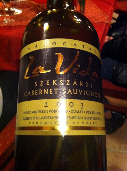 A következő bor egy 2003-as Vida Cuvée volt, mely Cabernet – Merlot – Kékfrankos – Kadarka házasítás csúcsbora. Egyik társam megjegyeztem, hogy a 2003-as mekkora veszéllyel előzi meg a későbbi évjáratú borokat, de hamar beláttuk, a 8 éves vörösbor frissesség terén fiatalabb „nagyágyukat” ver meg.