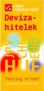 v a PSZÁF fogyasztói tájékoztatót tesz közzé a deviza alapú hitelek körében, a fentiekben ismertettek szerint, ahol de facto rögzítik, hogy minden egyes ügyfél hiteléhez a bank deviza kölcsönt vesz fel, ezért a banki árfolyamkockázatot egy az egyben hárítják át az adósra. Az adós bízik a PSZÁF-ban, és az általa felügyelt pénzintézetekben, és mindenki tudja, hogy a nyújtott kölcsön ellenértéke csak és kizárólag a kamat!