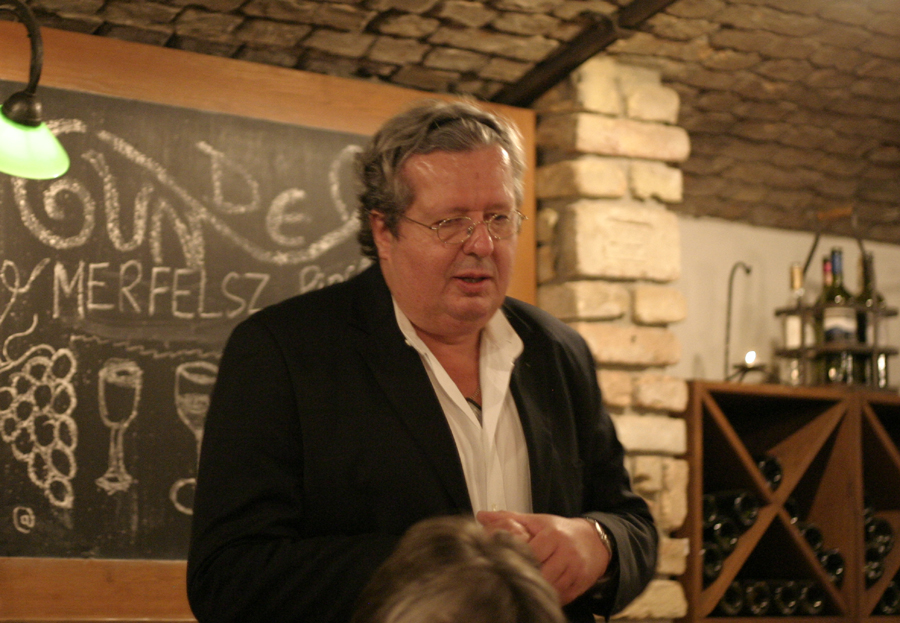 A 2012. március 25-én megtartott este vendége a szekszárdi Merfelsz Pincészet volt. A borokkal korábban már találkoztam, ám a borásszal még soha. Merfelsz Gábor mondhatni furcsa egy alak, mármint megjelenését illetően. Azonban, ha a kötelező erővel bíró hajráfot kivesszük a képből, akkor egy visszafogott, őszintén nyilatkozó, magát nem megjátszó, hiteles közgazdász-borász áll előttem. Persze, egy találkozásból sokat nem lehet levonni, de feleségével együtt olyan képet rajzoltak fel képletesen a pince falára, mely nem csupán hihető, hanem igen reális is volt. És erre nagy szükség lenne a magyar borászat kapcsán.