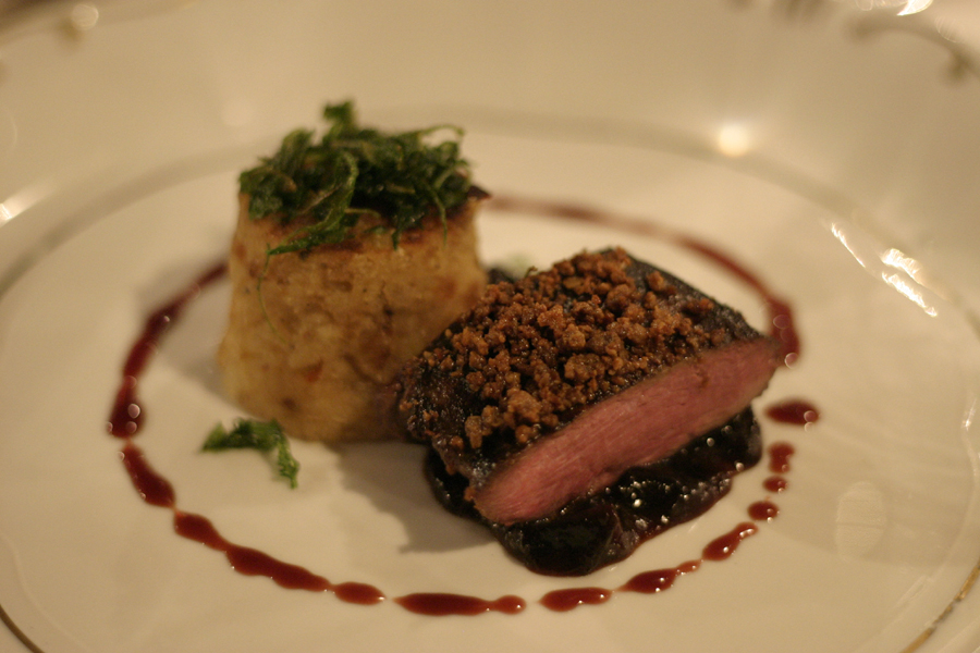 Az ételről szólok először: a kacsa nagyon elegáns volt, ám elkészítési módja oly nagyon hasonlított az előző fogáséhoz, hogy hiába bolondította meg a töpörtyű, nem igazán találtam érdekesnek. A szilva jó ötlet volt, önmagában is nagykanállal falatoznám, de valahogy lógott a levegőben.