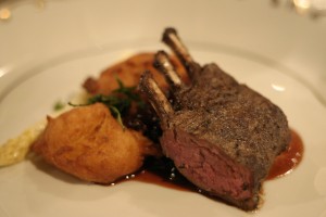 Grillezett őzborda burgonyafánkkal és vörösáfonya mártással