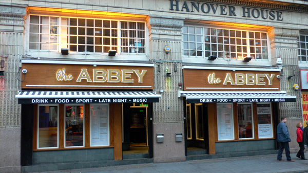 Elhagyván a foci vonatkozású helyeket, jóval kellemesebbnek tűnnek a belvárosi pubok. Sajnos nem mindegyikben lehet elfogadható minőségű ételt kapni, már amennyiben ebbe a körbe sorolhatjuk a „fish & chips” kategóriát, és a többi, tradicionális kocsma étket. Ám azért lehet válogatni, így esett a választás a THE ABBEY elnevezésű, szokásosnál rendezettebb, újabb, modernebb helyre, melynek konyhája kifejezetten felfelé tűnt ki a többi közül. említésre azért méltó a hely, mert azon hölgyeknek is tudom ajánlani, akik el nem tudják képzelni, hogy valaki egyáltalán belépjen egy pub ajtaján. Nincsen dohányfüst, nincsen ódon szag, szellős, hangulatos, és még fény is vetül az asztalok fölé. Az árai igen korrektek.