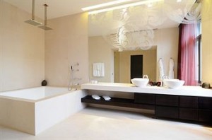 A szemközti fal teljes egészében tükör, de nincsen megvilágítása, így egy hölgy nem tud sminkelni. A mosdókagyló haszontalanul kicsi, a csap rosszul kezelhető, úgy ahogy van, nem néz ki sehogy sem. A bal sarokban egy hatalmas kádat találunk, úgy 2 m3-es kapacitással. semmi értelme, de nagyon mulatságos volt reggel úszni egyet benne.