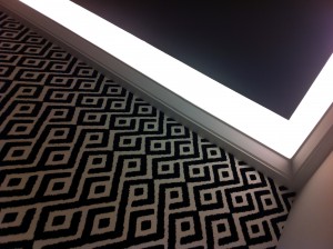 Egyszóval van egy főszabály, melyet illene tudomásul venni. A vendég nem hülye, nem vak, és aki ezt az árfekvést megfizeti, az már járt 5 csillagos szállodában. Azaz a természetes fényt illene bejuttatni a belső terekbe, ha nincsen erre lehetőség, akkor tessék lámpákat vásárolni, mégpedig olyanokat, melyek fényt adnak. Lehet a mély színekkel operálni, avagy a fény-sötétség kontrasztjával, de nem lehet az otthonosságot elvenni. A Klotild Palota elemi hibákat vétett, és mindent feláldozott egy gondolatért. Sajnos a sötétség alig észrevehetővé teszi az egyébként briliáns építészeti megoldásokat is, mert a sötétség rátelepszik a vendég agyára.
