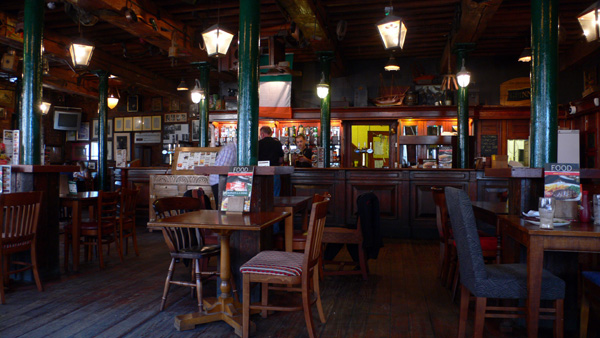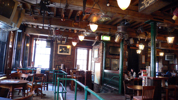 A Cavern Club felé haladván bal kézre eső pub portálja messze nem megnyerő. Földszinti ivó része nem barátságos, ám az emeleti “éttermi” rész már elfogadható. Sőt, azt kell mondjam, annyira szakadt, hogy már jó is. Az ősrégi épületszerkezet vaskos mennyezeti gerendáiról olyan dolgok lógnak lefele, mely alkoholmámorban sem jutna eszébe egy normál embernek, ám itt azt hiszem, csak komplett tehenet nem kötöttek fel a plafonra…