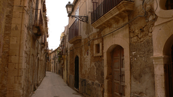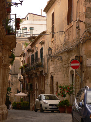 Séta közben valahol visszakanyarodtunk a sziget belseje felé, mivel a Piazza del Duomot kerestük, mint a város legmagasabb pontját. Szűk, sikátorszerű utcákon haladtunk végig, melyek sokkal jobb állapotban voltak, mint más városkákban. A tisztaság itt elviselhető, a padozat mindenhol szépen lerakott térkövekből kialakított. Érdemes a szemet folyamatosan magasra is emelni, mert a Szicíliára oly jellemző, túldíszített erkély kialakítások számos szép példájával találkozhatunk. A lakóházak többsége nagyon régi lehet, és nem mindent döntött romba az 1693-as földrengés. A város újraépítésekor alkalmazott barokk stílus és a régi, ősi épületek harmonizálnak egymással, de az is lehet, hogy csupán „összepusztultak” egy egységgé.