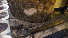 Különösen jól látszik ez az aljzatnál, ahol a régi oszlopok talapzata láttán el kell gondolkodni a csaknem 2500 éven…