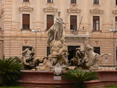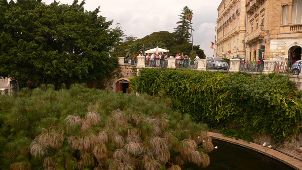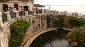 Barangolást a hotelhez legközelebb eső édesvíz forrásnál (Fontana Aretusa) kezdhetünk, melynek mitológiai jelentősége nagyobb, mint turisztikai. A tengertől a promenád vaskos fala választja el, és öblében papirusz telepedett meg. A festői látványt a meglehetősen, part menti étterem épületek rontják le, ám a központ felé visszatekintve sokkal kellemesebb a kilátás. A sziget végében álló erődöt nem lehetett látogatni a felújítás miatt, ám az útikönyvek leírása alapján érdemes megtekinteni. Legalább szeretném azt hinni.