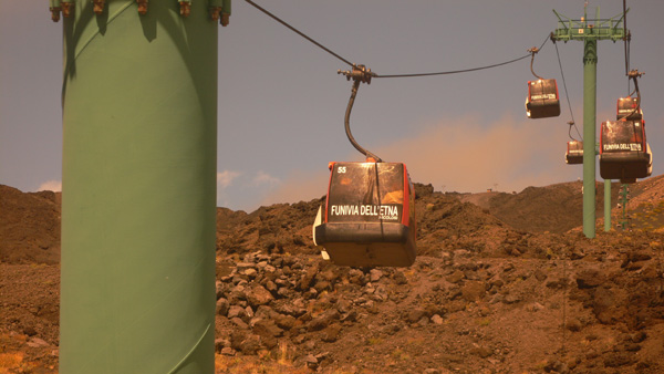 Amikor a kabinból kiszállnak az utasok, egy párkányra érkeznek, ahonnan kiváló kilátás nyílik az alant fekvő Cataniára, ám ebben csak visszafelé gyönyörködhetünk, mert a bátor turisták kaptatnak feljebb, a különleges járművekig, melyek még feljebb szállítanak minket.