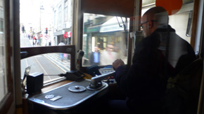 Ezen a ponton kell visszatérni gyermekkoromhoz. Örökké kitörölhetetlen mozzanat az, mikor a végállomáson a vezető leszereli a kart (bal oldali képen), majd a csonkot hátrahagyva átsétál komótosan a villamos másik végére, és ott felszereli. A lisszaboni villamosok ezt még majdnem tudják, ám az emlékekbe “belerondítanak” a modern jegykezelő készülékek. Egyebekben azonban a járművek tökéletesen korhűek.