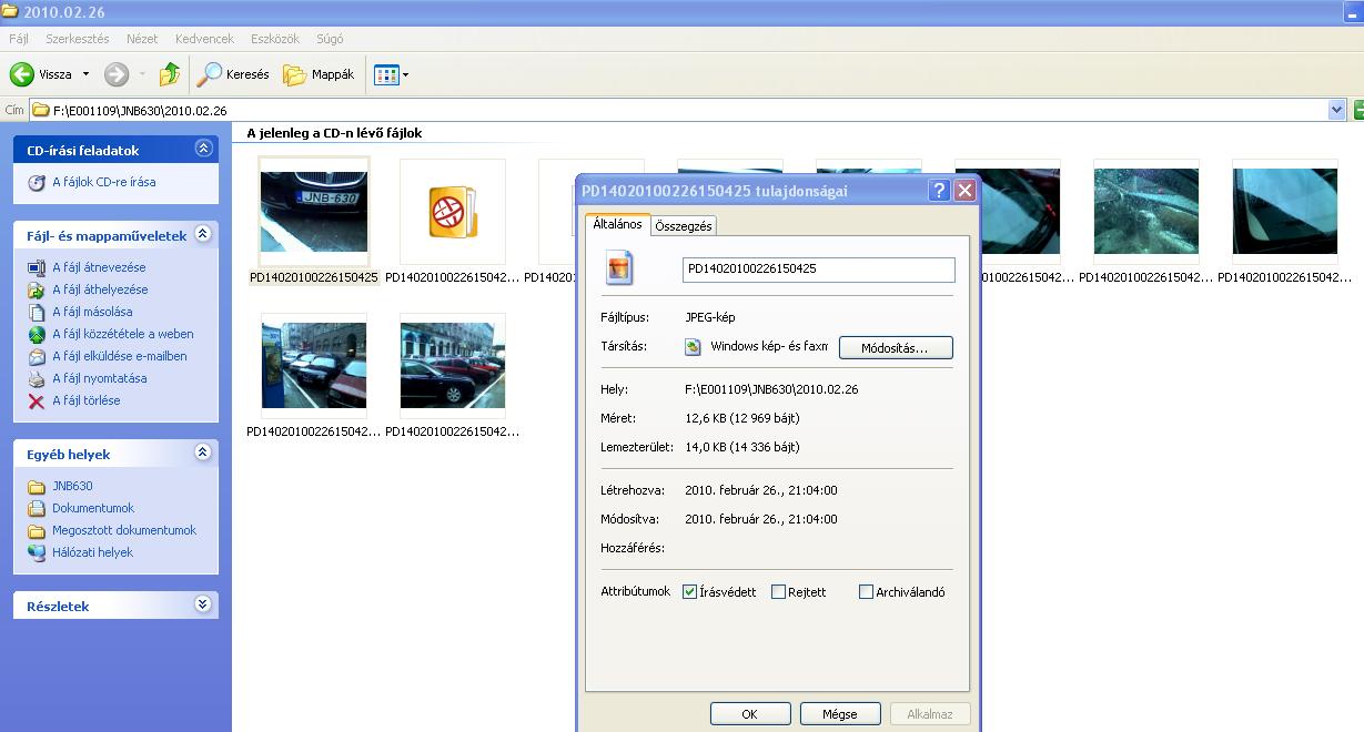 Az XML dokumentum létrehozásának dátuma 2010. február 26. 21:04:00 óra. Az írásvédett file létrehozási időpontja tökéletesen megegyezik a JPEG-képek létrehozásának dátumával.