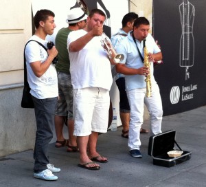 Időnként utcazenészek leptek meg minket, melyre barátom közölte, Devecseriek azok, bizony… Sebaj, a zenéjük jó volt, és a beállásokat is ismerték, nem maradt el a kalapba dobott pénz sem. Egyébként döbbenetes, hogy mennyi kelet-európai, vagy szláv ajkú zenész rója az utcákat.