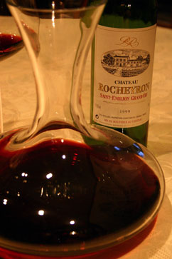 Konkrétan egy 1999-es évjáratú CHATEAU ROCHEYRON Saint-Emillion Grand Cru borról van szó. Az interneten megpróbáltam utánanézni a pincészetnek, de gyakorlatilag csak annyit találtam, hogy ugyanennek a bornak a 2000-es, méltán kiemelkedő évjáratát 60-65 USD árért vesztegetik. Mivel már nem bűncselekmény, bevallom, hogy a palackot, egy tucat egyéb társával együtt becsempésztem a határunkon. Meg a söröket…