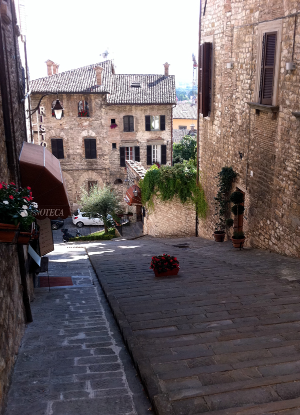 Van olyan, amikor az ember olyan helyeket keres, melyek egyébként nem nagyon jutnának az eszébe. A sor úgy hozta, hogy szinte kötelező erővel kellett felkeresni Gubbio (Umbria tartomány) középkori városát, két okból. Először is a Don Matteo (Terrence Hill alakítása) atya nyomozásairól szóló könnyed krimisorozat játszódik a város fala között, másfelől Umbria felfedezése eredetileg is napirendi pontként szerepelt életünkben. Mivel San Marino csak egy köpésre volt, egy fél napos kiránduláshoz is elegendőnek tűnt az idő.