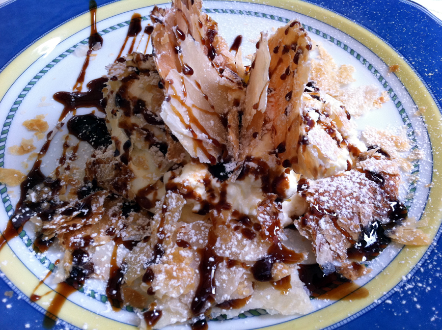 A vacsora elég sokáig eltartott, és habár az eredeti menütől eltértek a fogások, azok jóval többet nyújtottak, mint a címek alapján vártuk. A felszolgálás kitűnő volt. Amikor egyszer megjegyzést tettem a gyönyörre, a pincér rezignáltan megjegyezte: Ottimo…